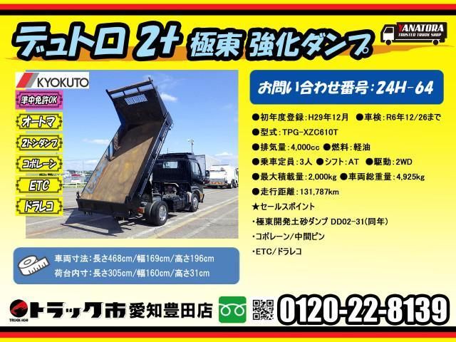 | ☆ Reinforced Yokozuna Dump Truck ☆ Total Weight Less than 5t ☆ Roof Career ☆ Cargo Bed 3-way Opening ☆ Rear Pin ☆ High Quality Made Same Model Year ☆ Electric Parking Brake ☆ Collision Damage Mitigation Brake ☆ Plated Part ☆ Left Power Retractable Mirror ー ☆ ETC2.0 ☆ Drive Recorder ☆ Warranty | |