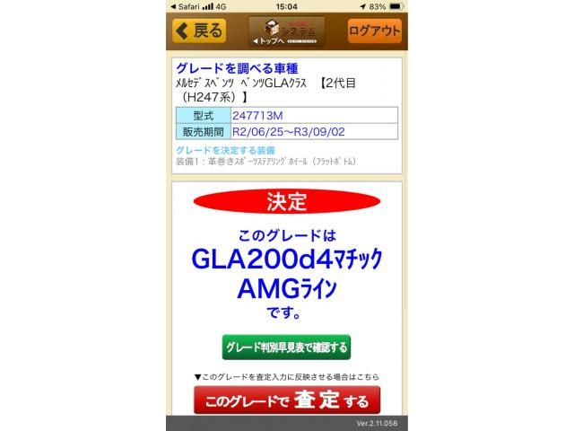 Grade: | GLA200d4マチックAMGライン |