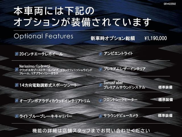 | Air Cond / Air Bag / ABS / Alloy Wheels / Leather Seat / Navi / TV / Keyless Entry / Reverse Camera / ETC | |