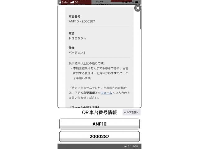 | Grade: | HS250hバージョンI |
