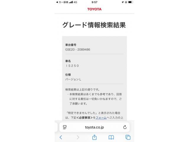 | Grade: | IS250バージョンL |