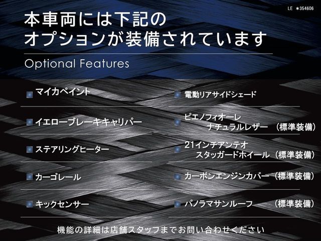 | Air Cond / Air Bag / ABS / Sun Roof / Alloy Wheels / Leather Seat / Navi / TV / Keyless Entry / Reverse Camera / ETC | |