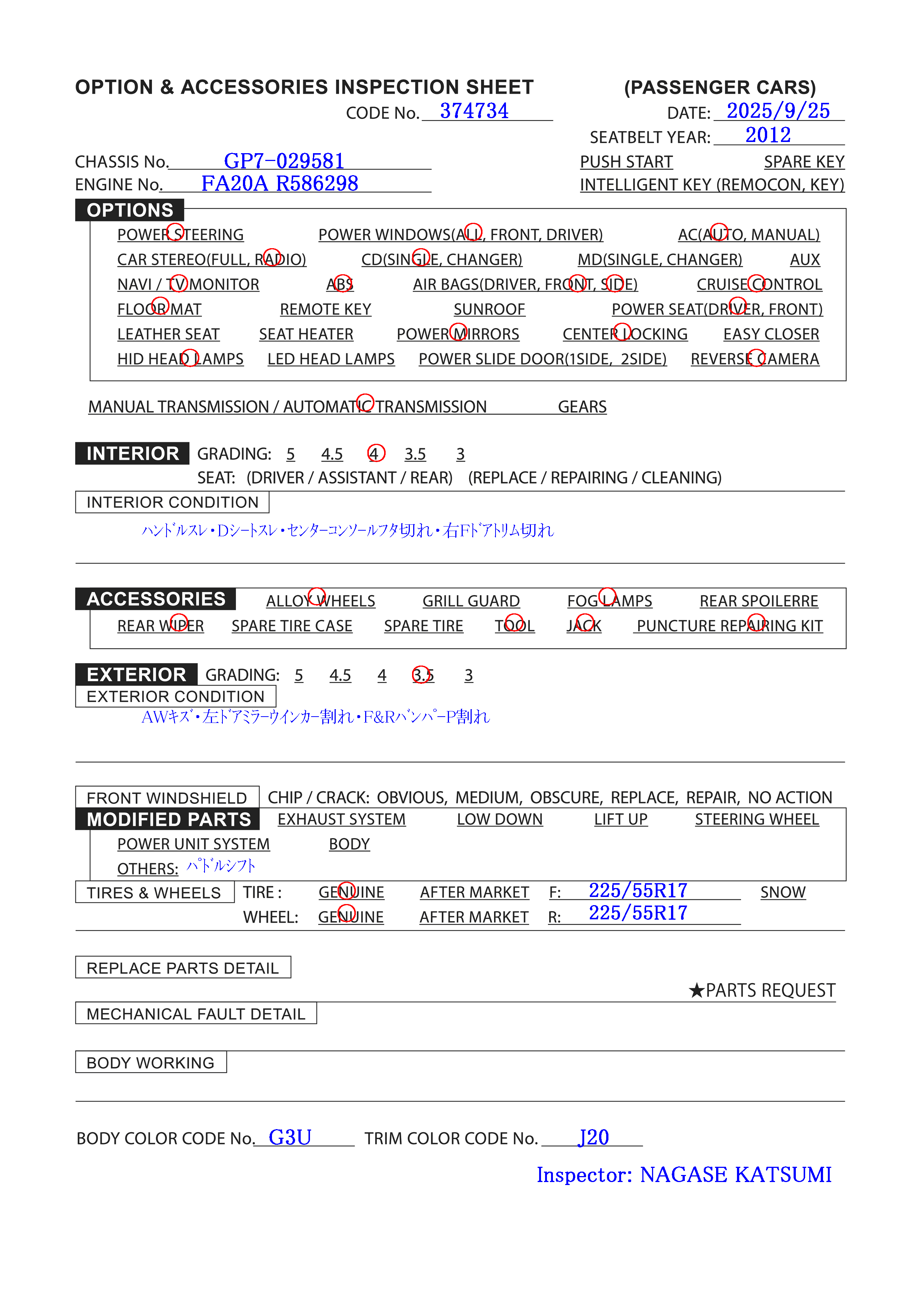 Размер шин и колес: F:225/55R17 R:225/55R17