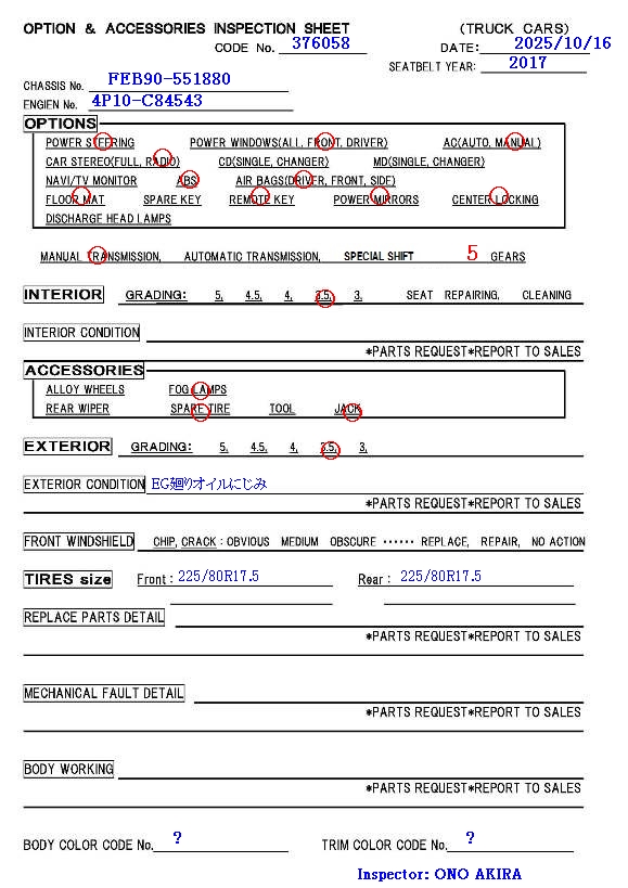 Pneu &; taille de la roue: | F:225/80R17.5 R:225/80R17.5 |