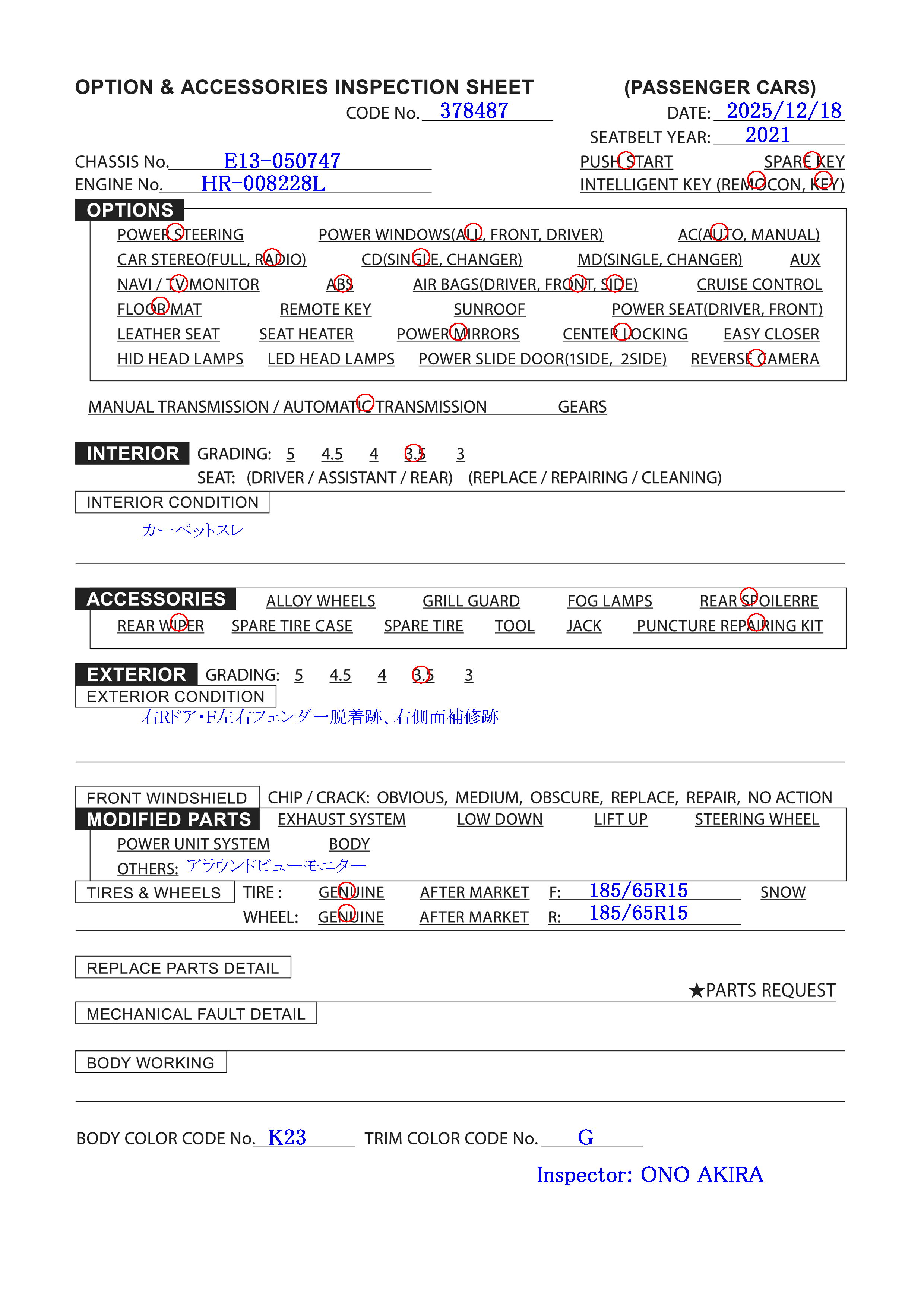 Le NUMÉRO de moteur: HR-008228L