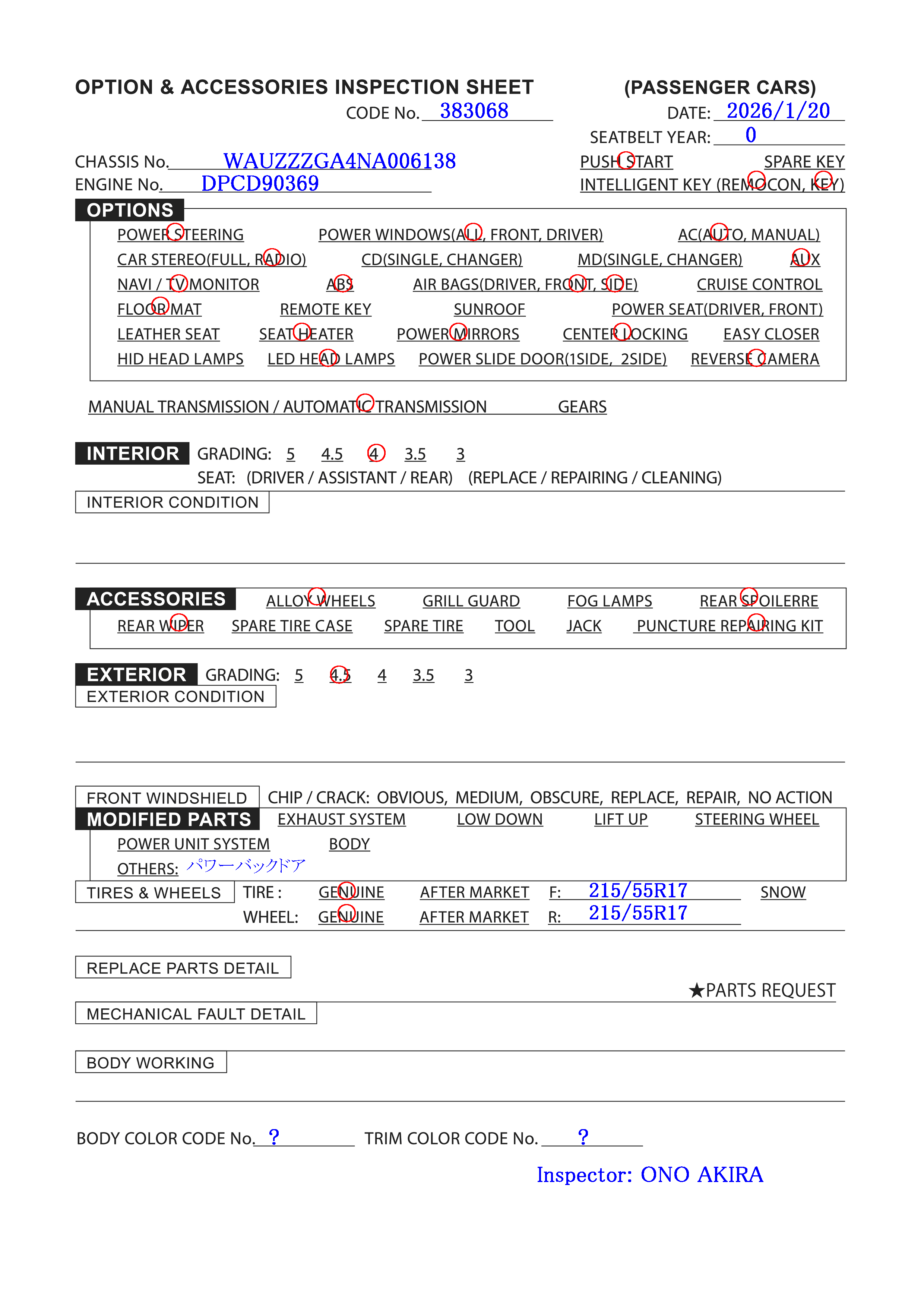 Chassis: WAUZZZGA4NA006***