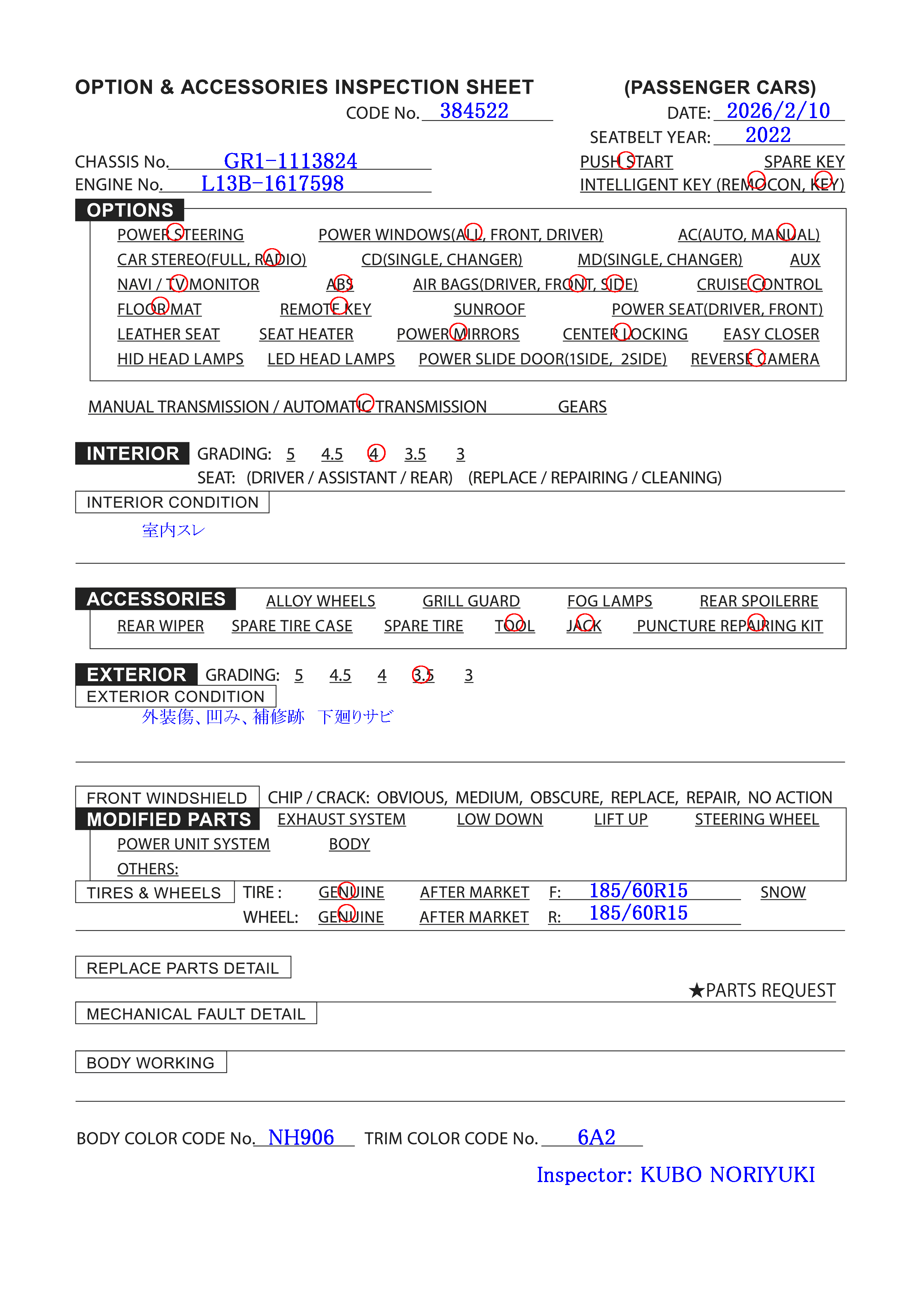 Chassis No: GR1-1113***