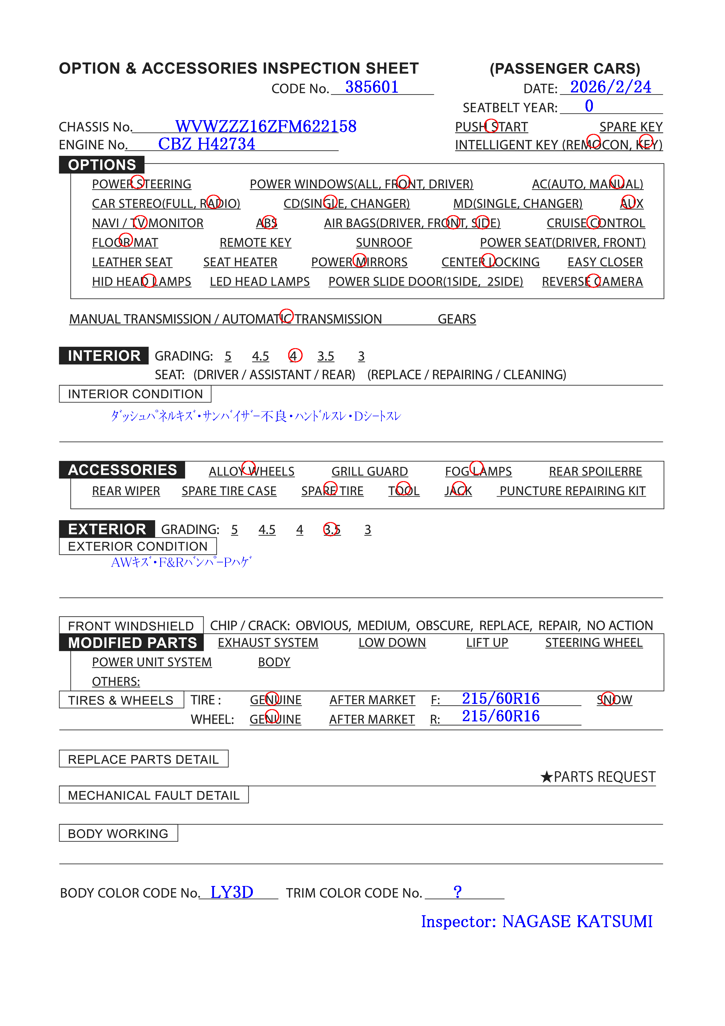 Tire&Wheel Size: F:215/60R16 R:215/60R16