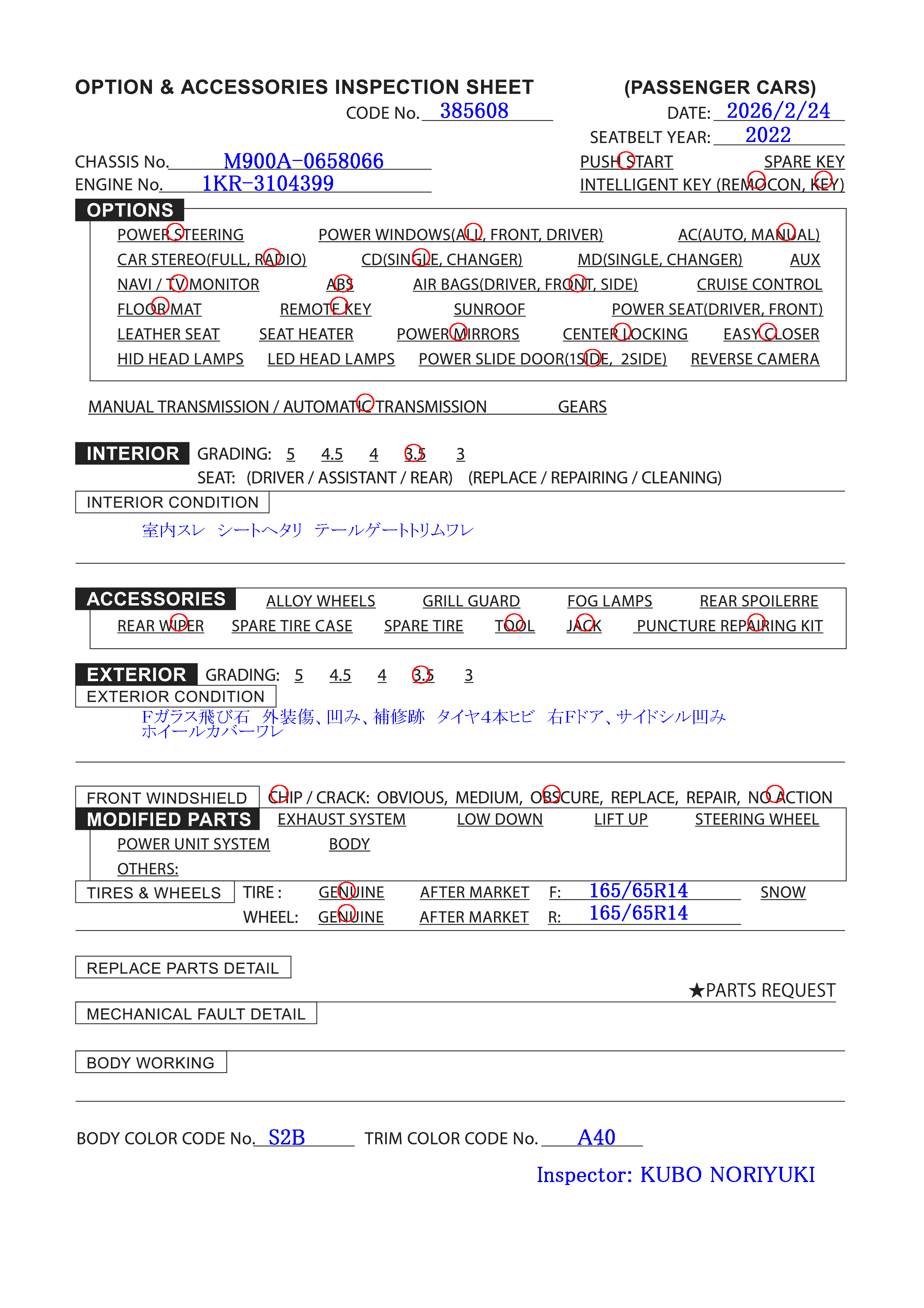 Le NUMÉRO de moteur: 1KR-3104399