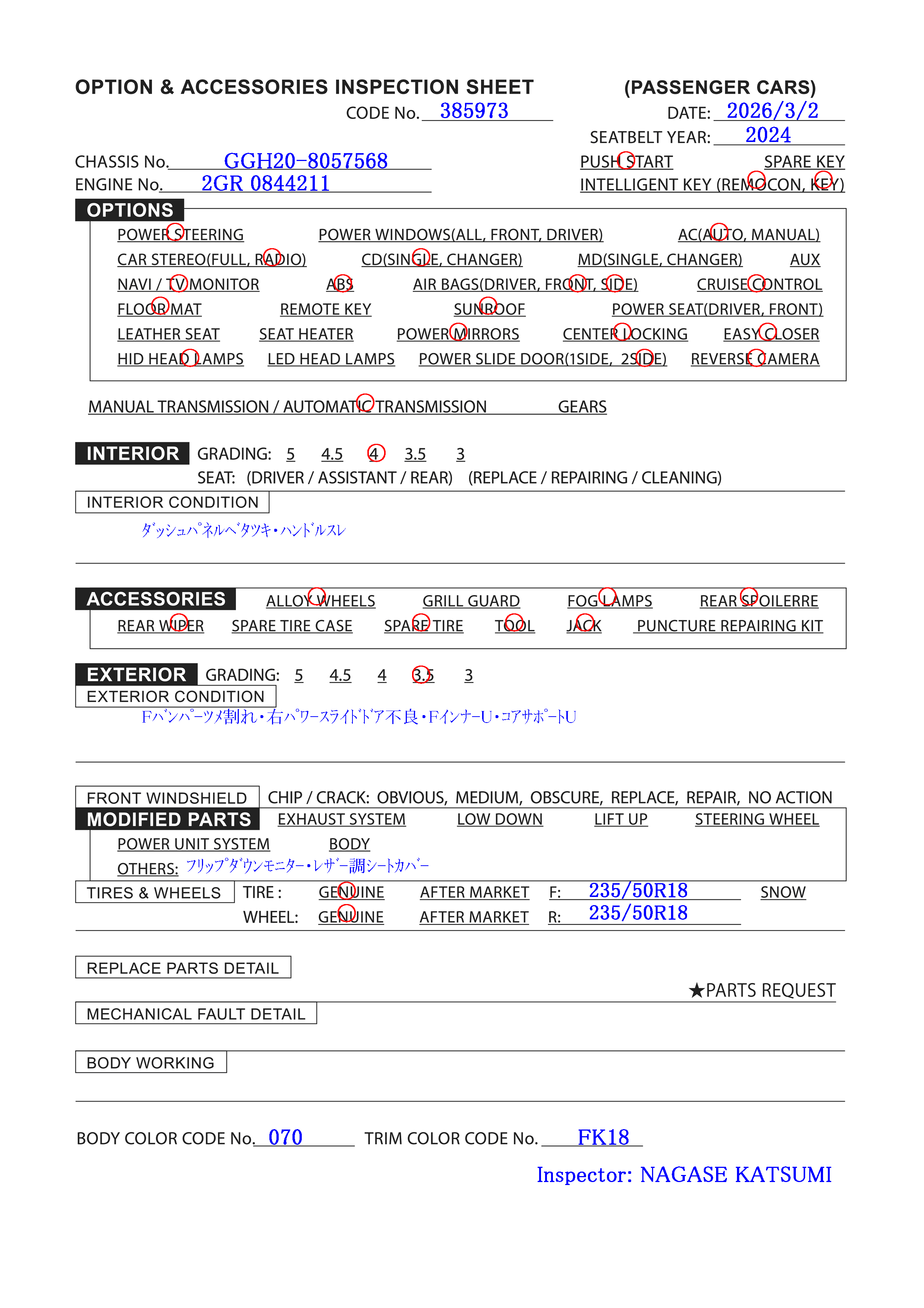 Engine No: 2GR 0844211