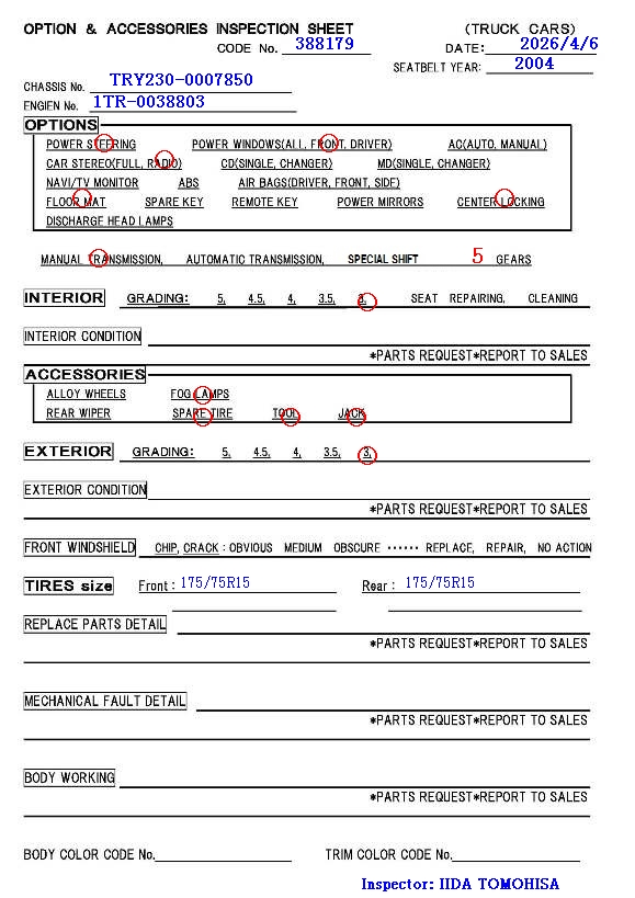 | Engine No: | 1TR-0038803 |