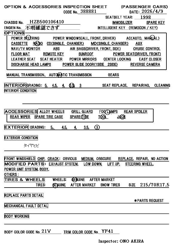 3.0 points * auction grade 3.5 * LOW MILEAGE 108000KM |