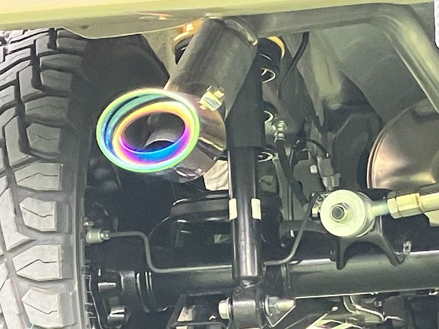 | Lift-up bushings, RSR lateral rod over fenders, Open Country White lettering, original rear short bumper, round LED tail lamps, muffler cutter, power sliding doors on both sides |