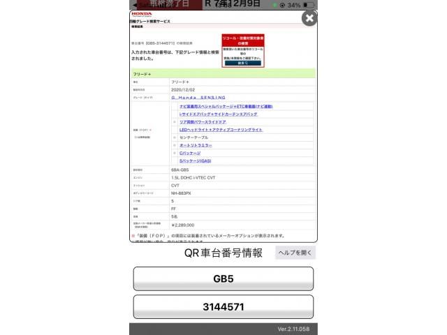 | Grade: | Gホンダセンシング |