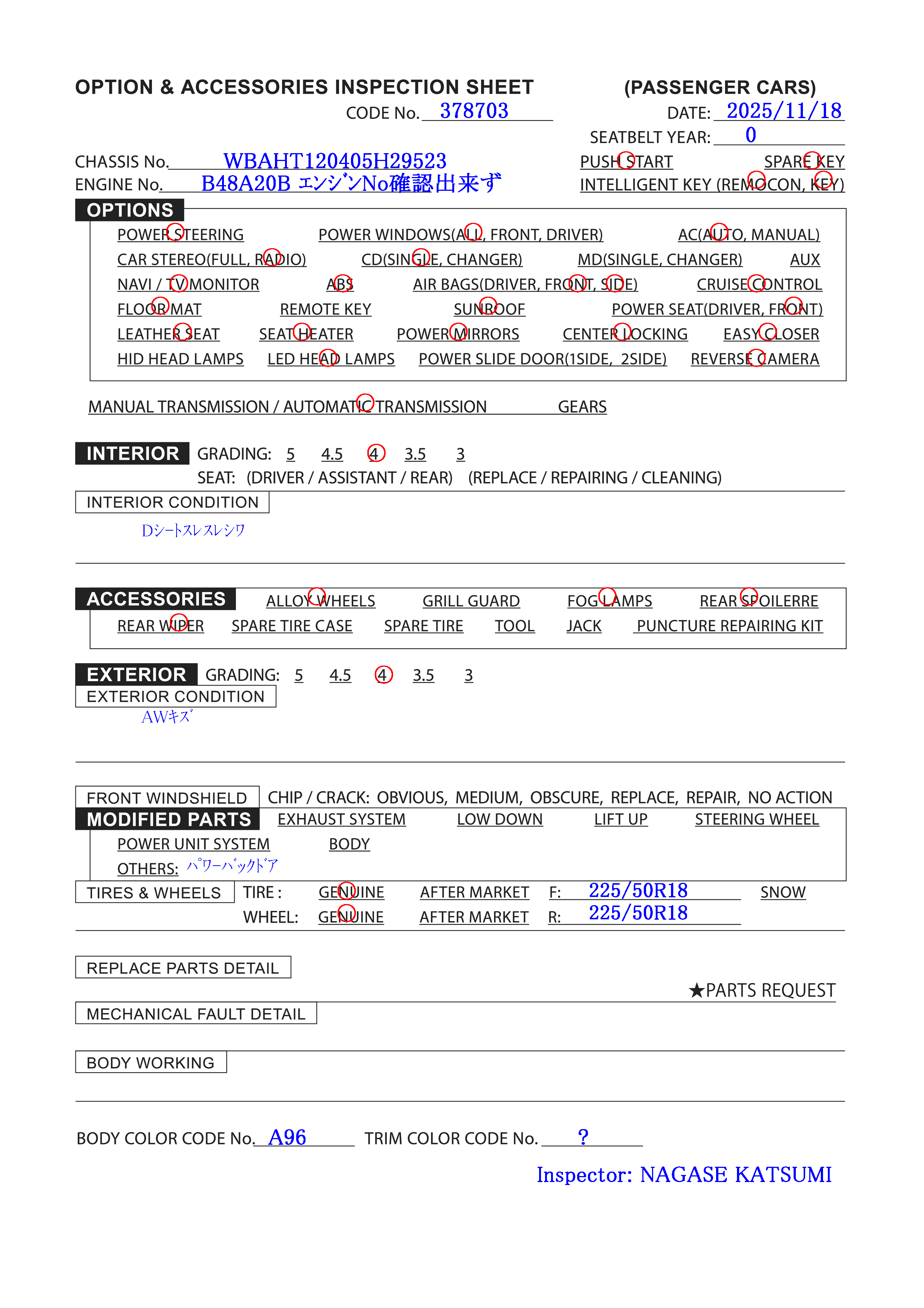 | Engine No: | B48A20B エンジンNo確認出来ず |