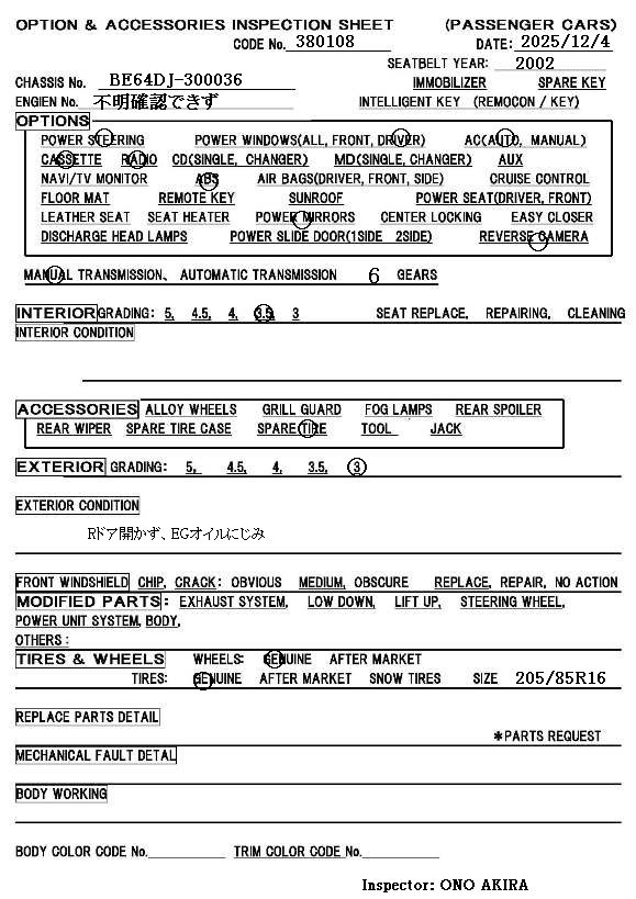 | KK-BE64DJ | 9/2002 | MT | 132,000 km |