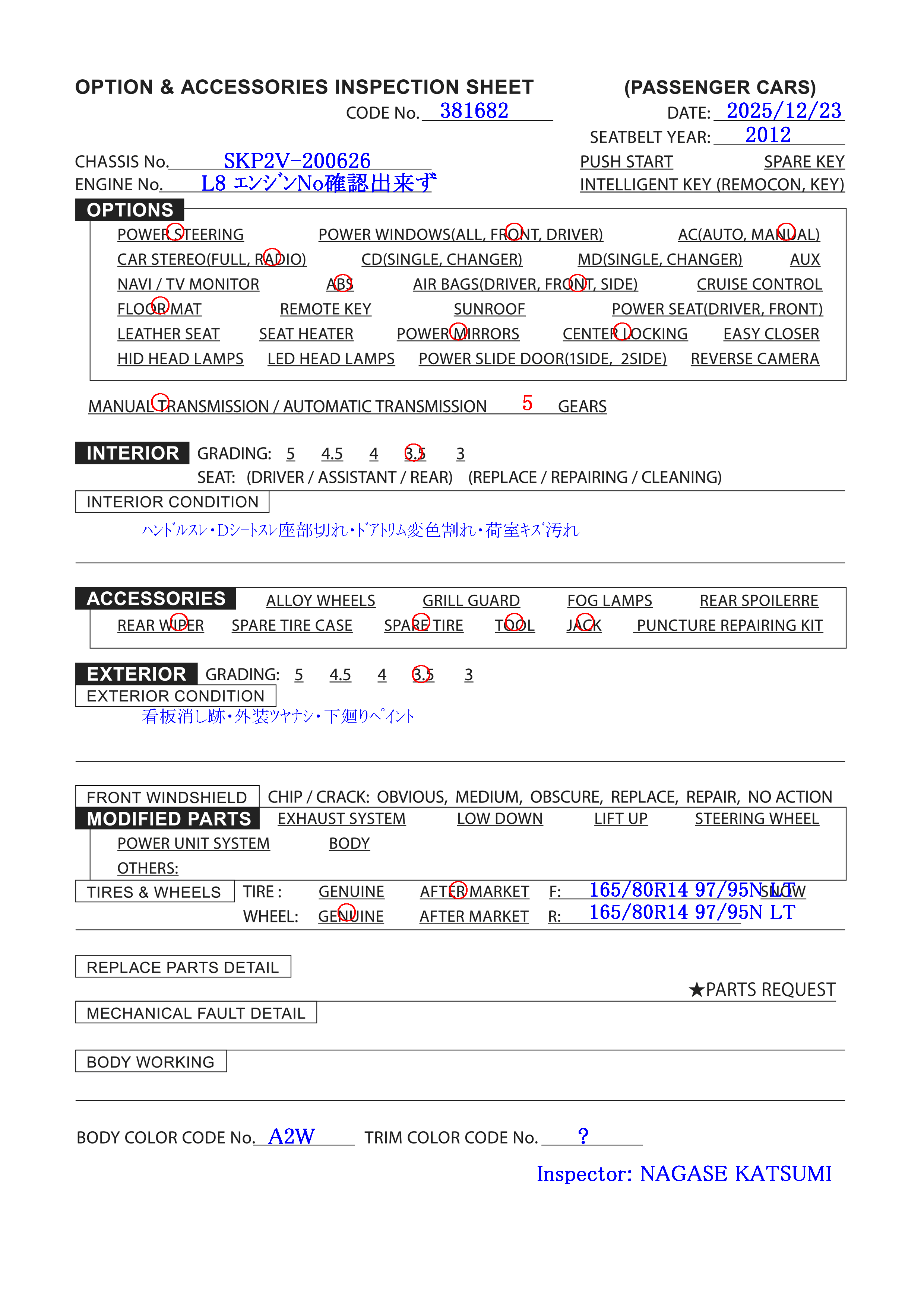 3.5 points * auction grade 3.5 * LOW MILEAGE 98000KM |