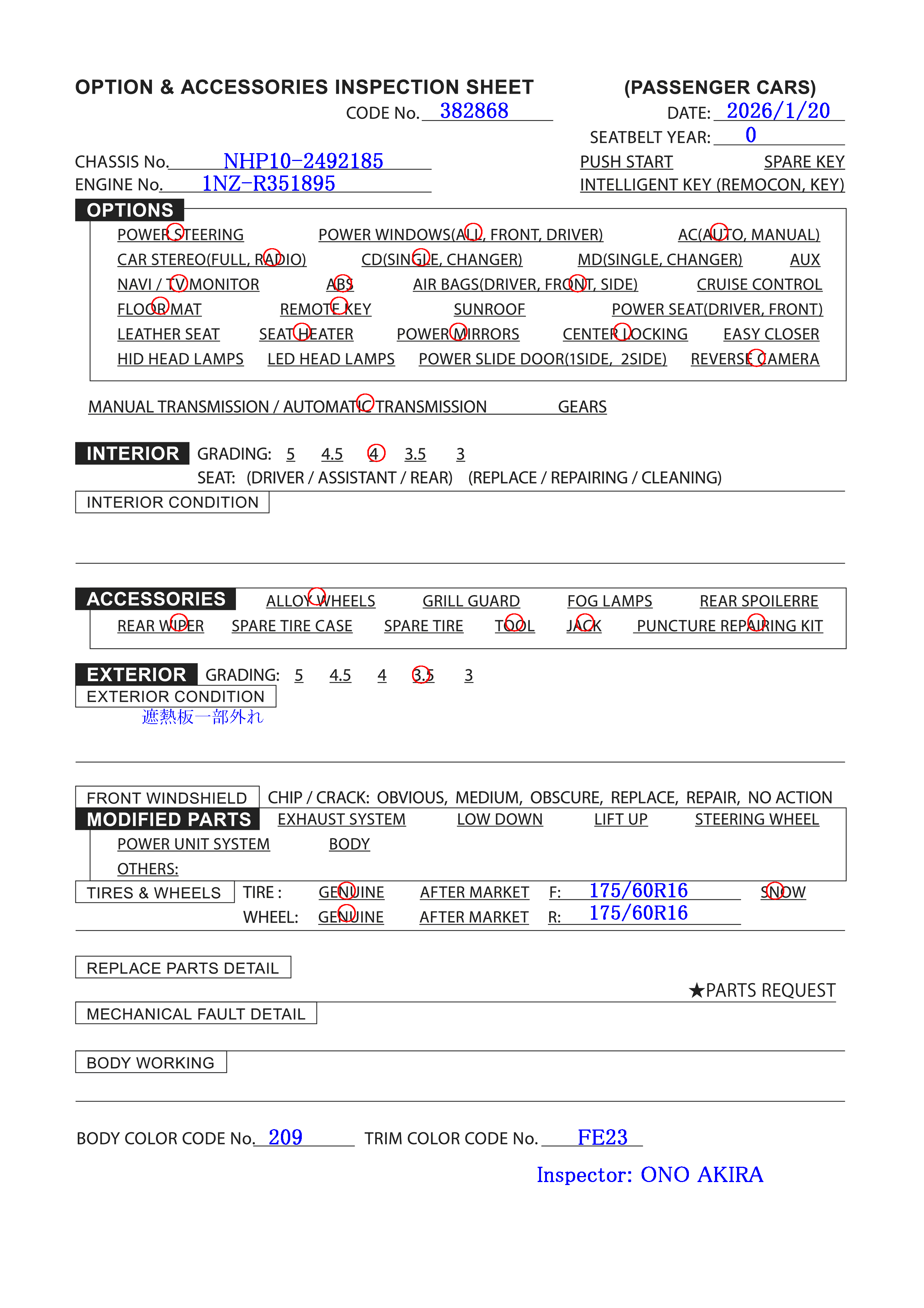 | DAA-NHP10 | 11/2015 | AT | 117,000 km |