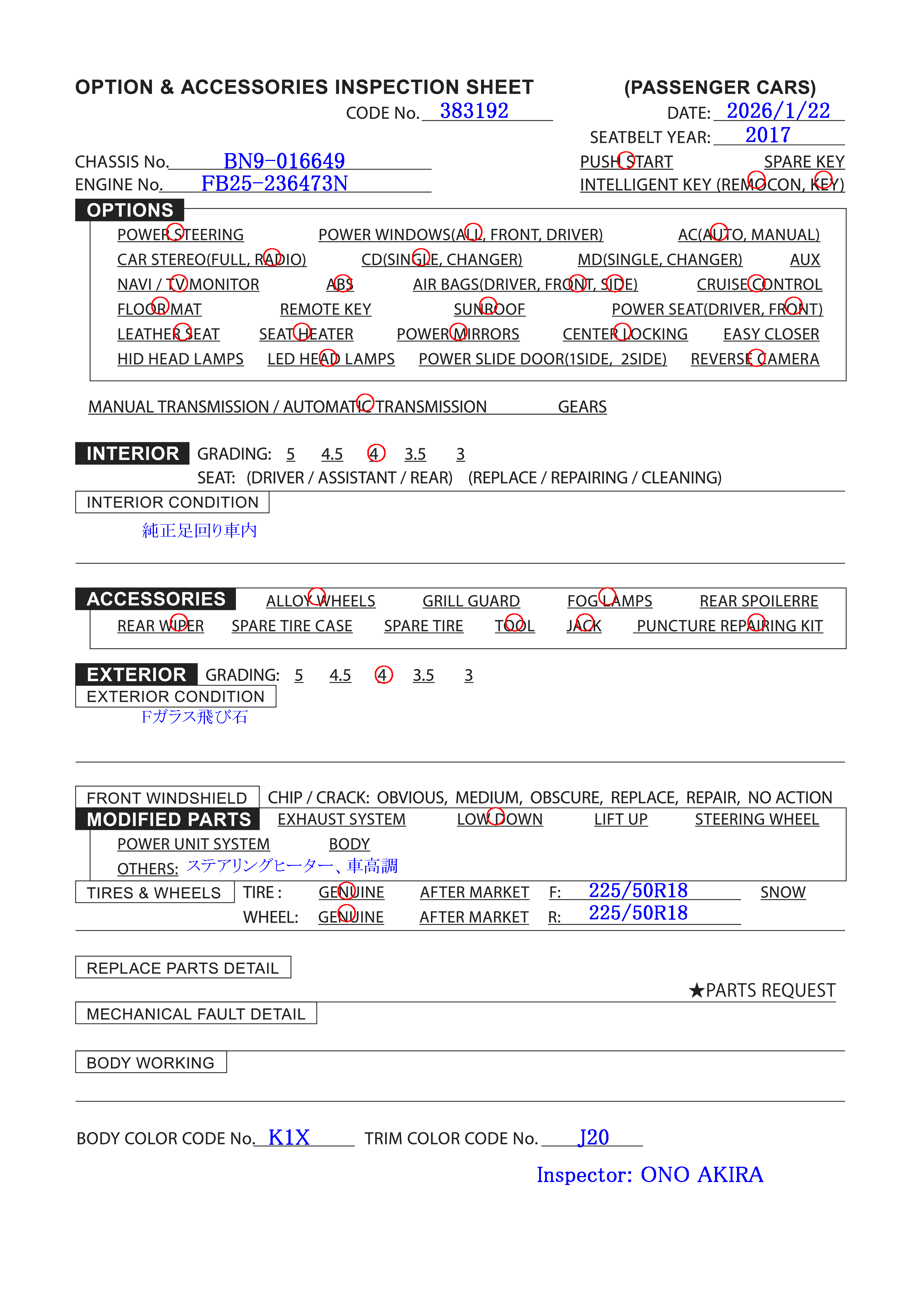 | DBA-BN9 | 1/2018 | AT | 109,000 km |