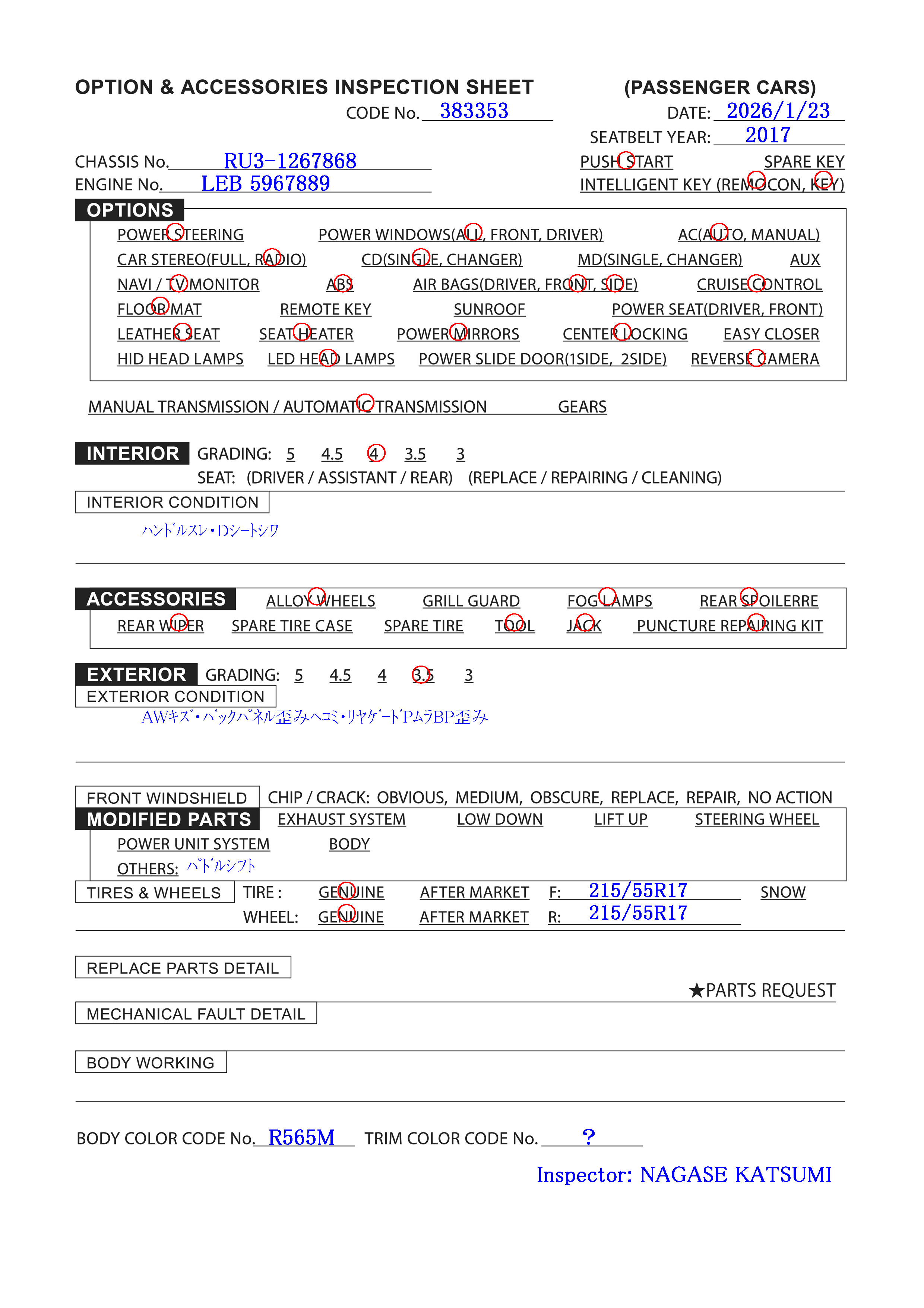 | DAA-RU3 | 2/2018 | AT | 128,000 km |
