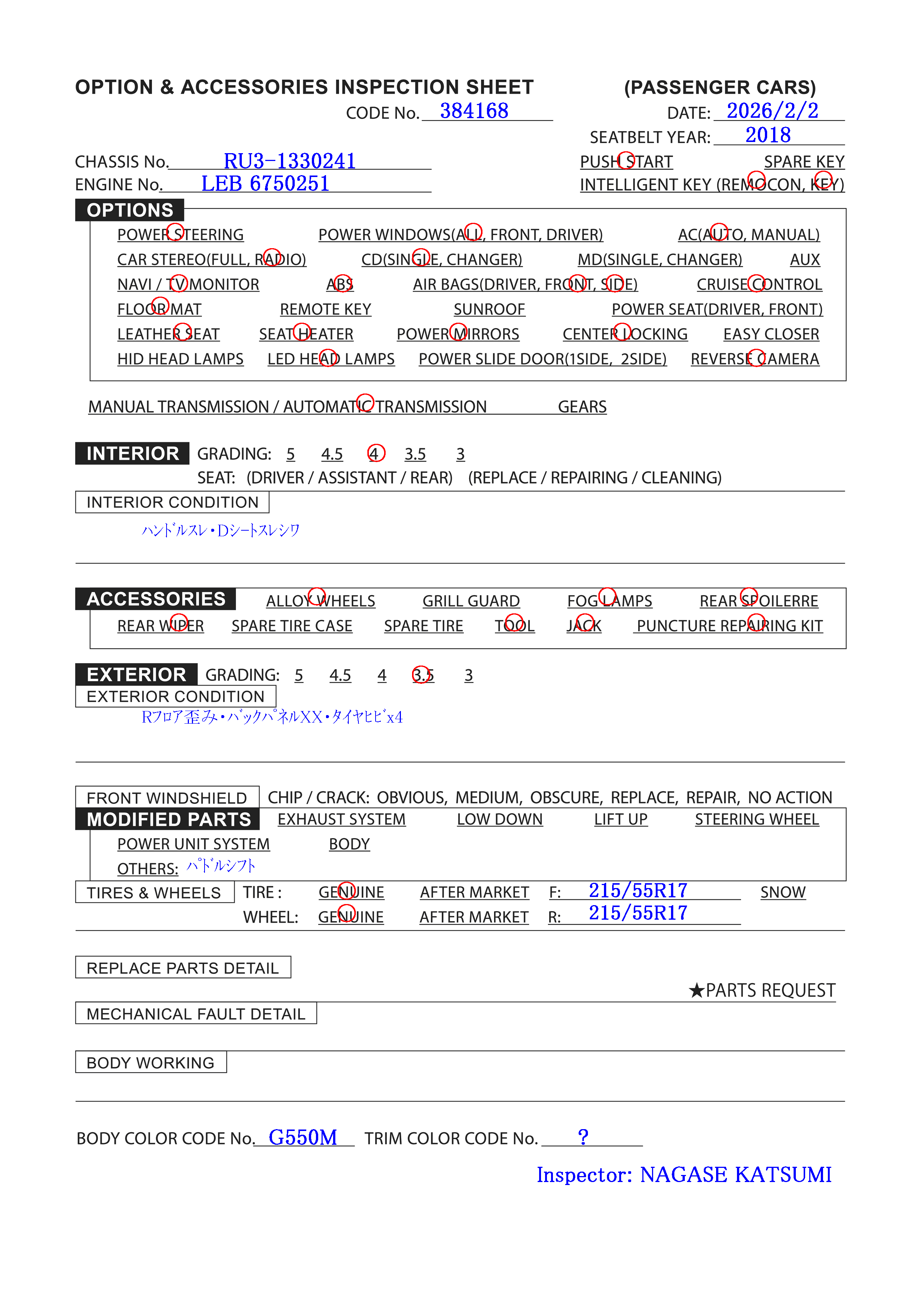 | Tire&Wheel Size: | F:215/55R17 R:215/55R17 |