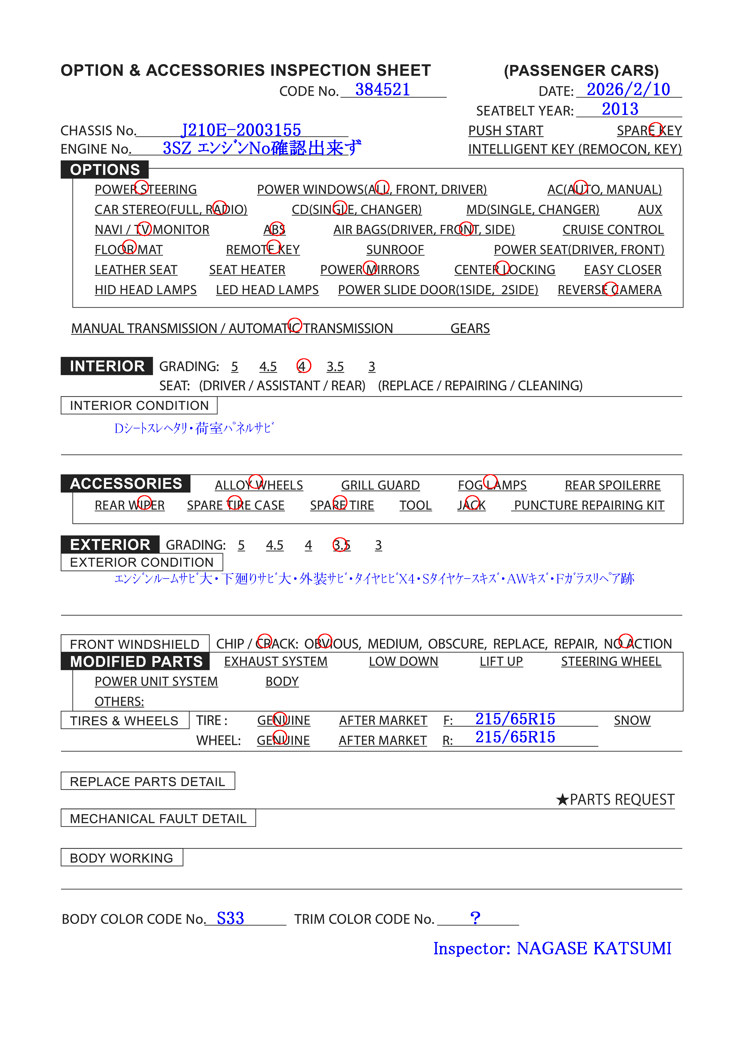 | ABA-J210E | 2/2013 | AT | 165,000 km |