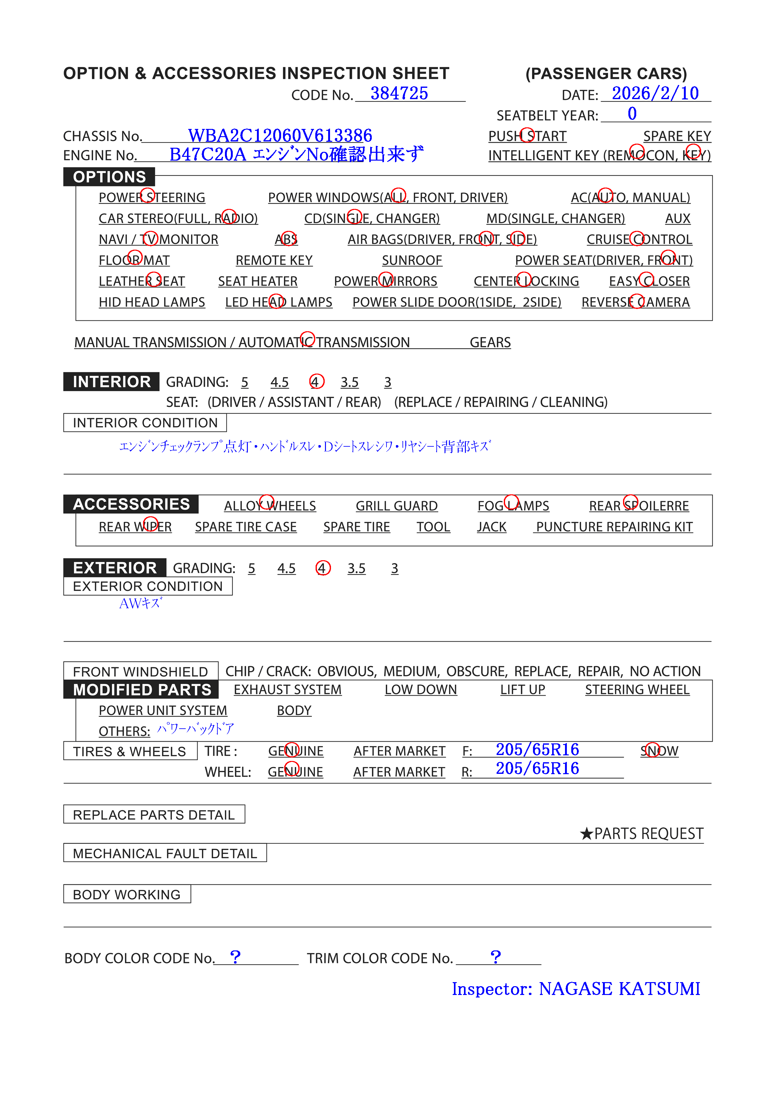 | Numero del motor: | B47C20A エンジンNo確認出来ず |