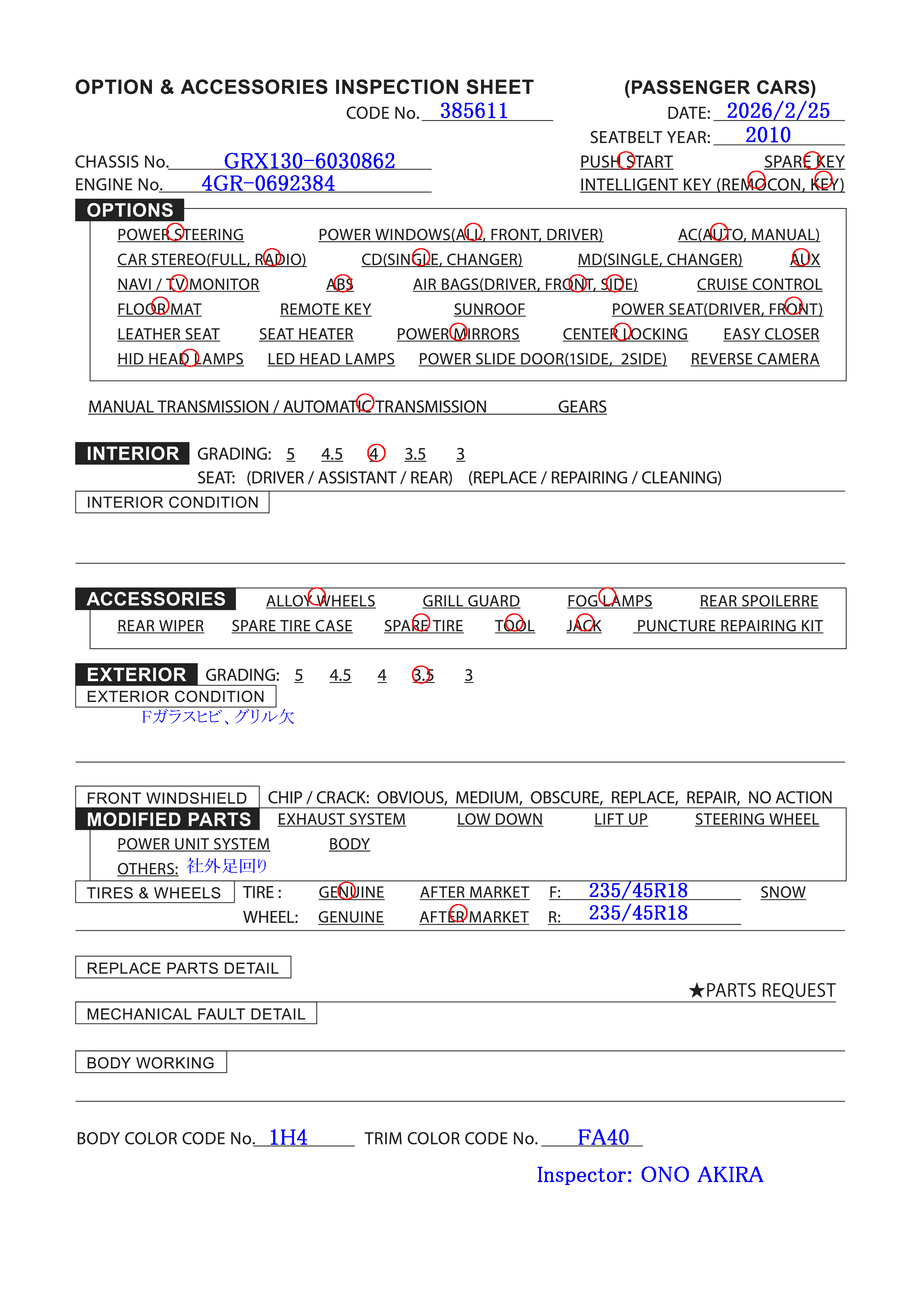 DBA-GRX130 8/2010 AT 86,000 km