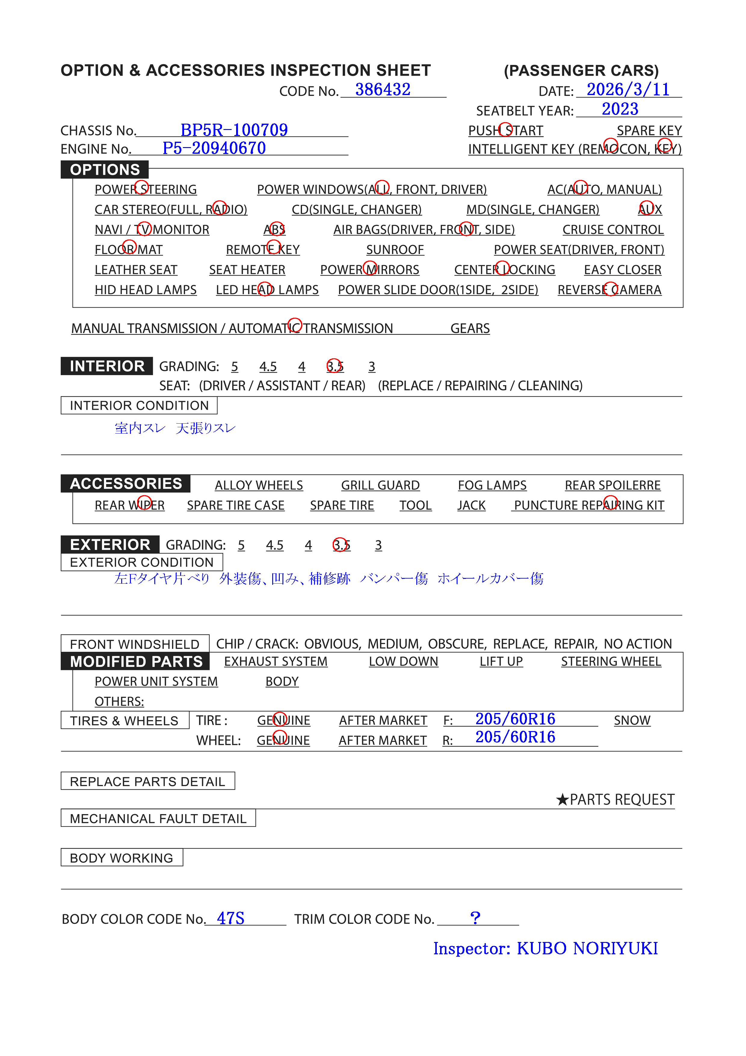 | Code De Couleur Extérieur: | 47S |