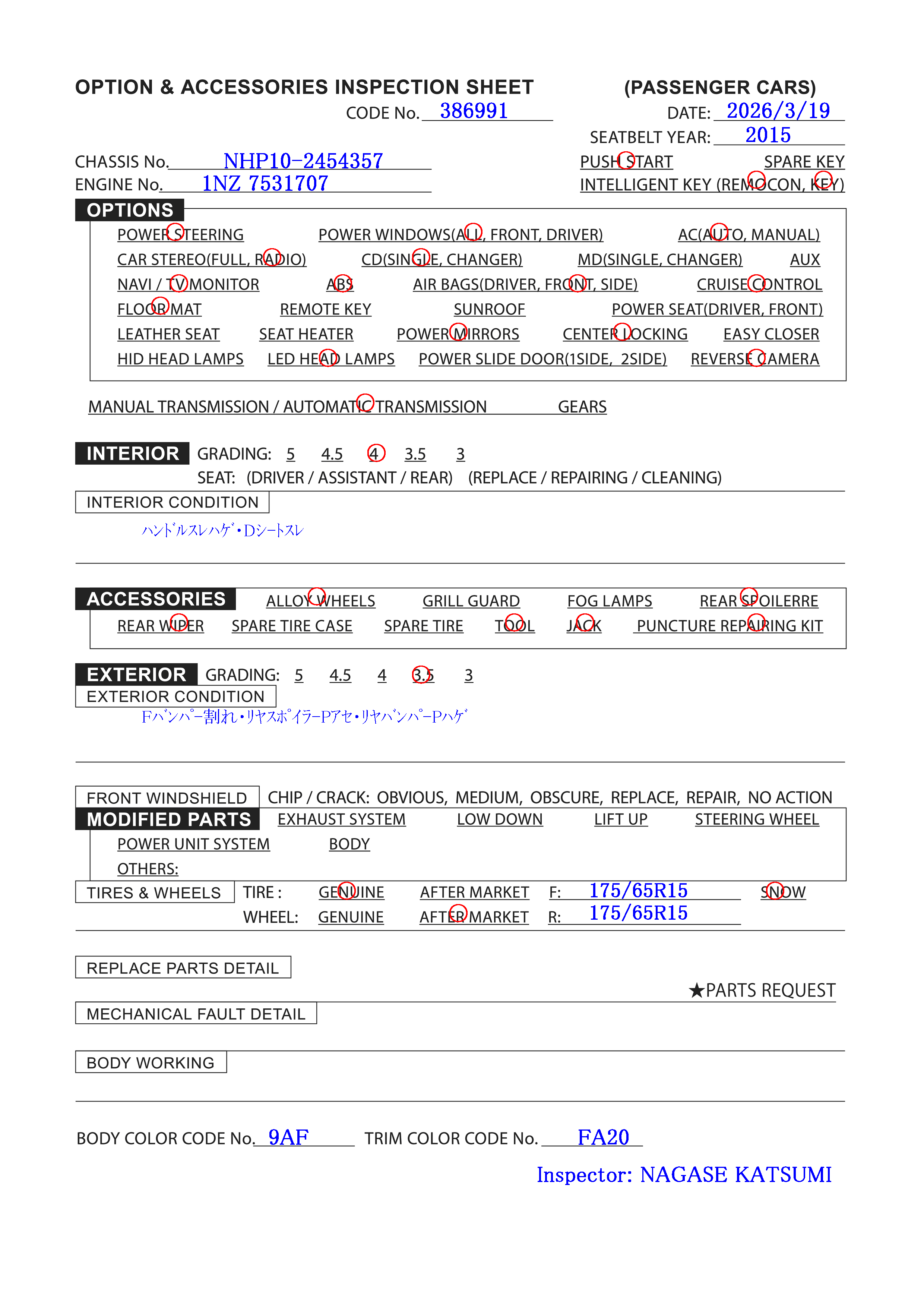 | DAA-NHP10 | 4/2015 | AT | 116,000 km |