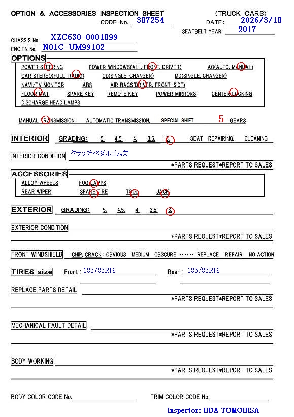 | TKG-XZC630D | 3/2017 | MT | 142,000 km |