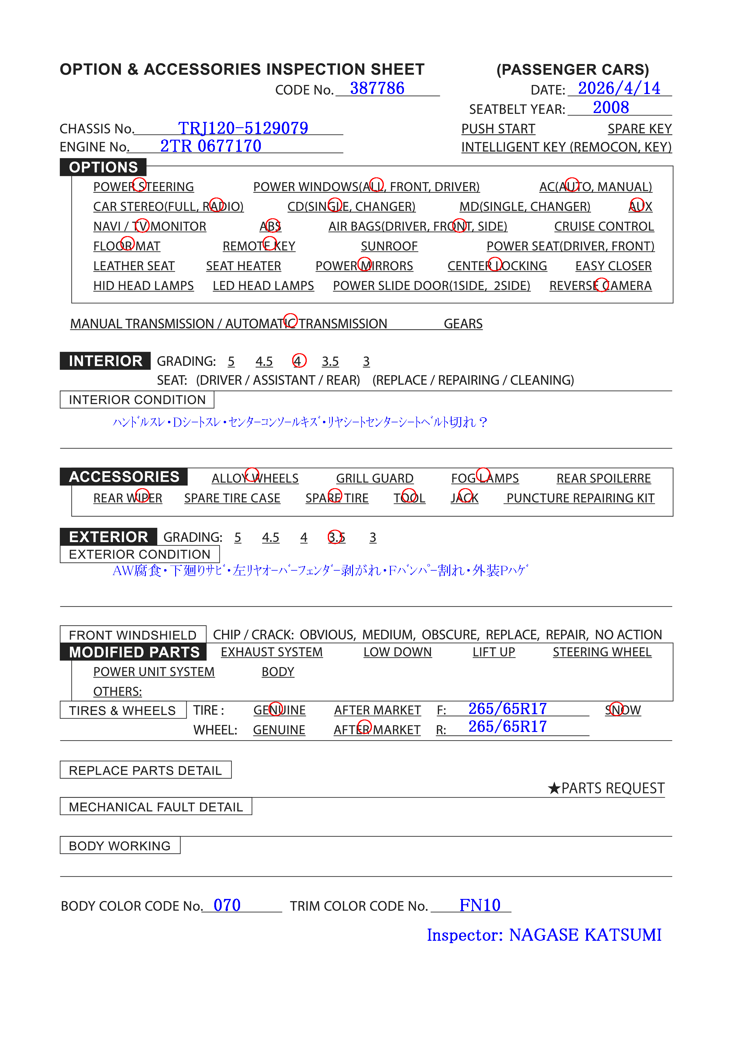 | Chassis: | TRJ120-5129*** |