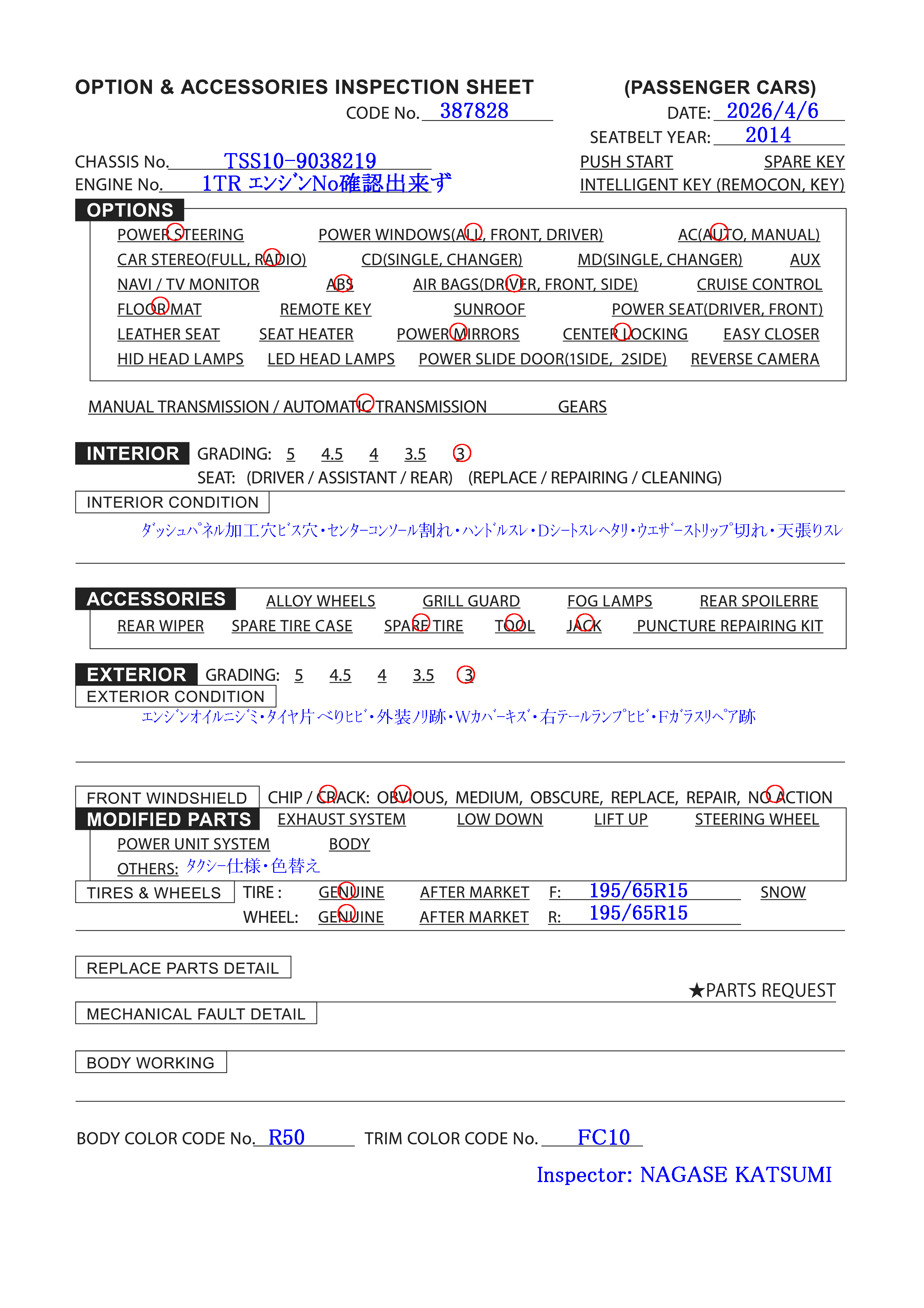 Engine No: 1TR エンジンNo確認出来ず