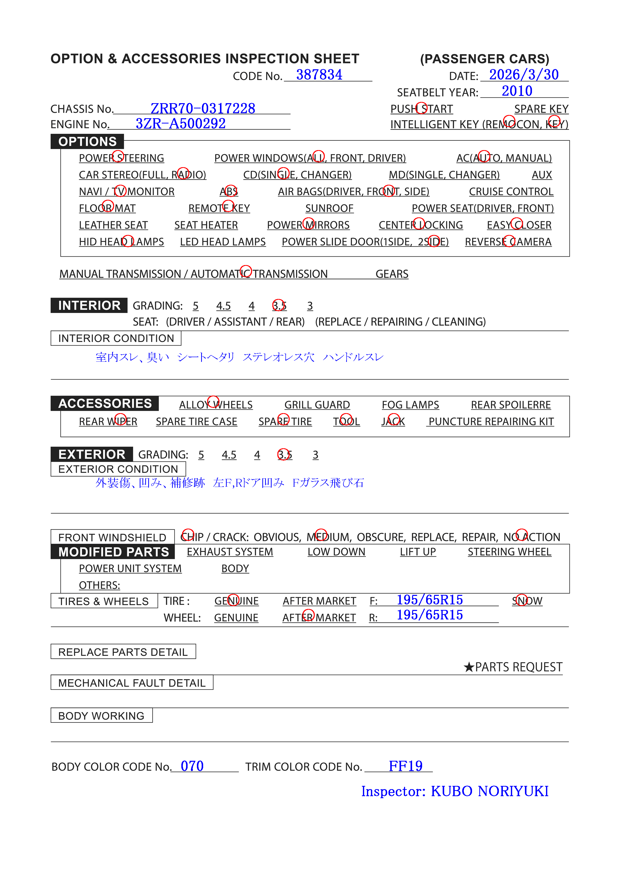 The 2010 TOYOTA NOAH is a WAGON with 107,000km on the odometer.