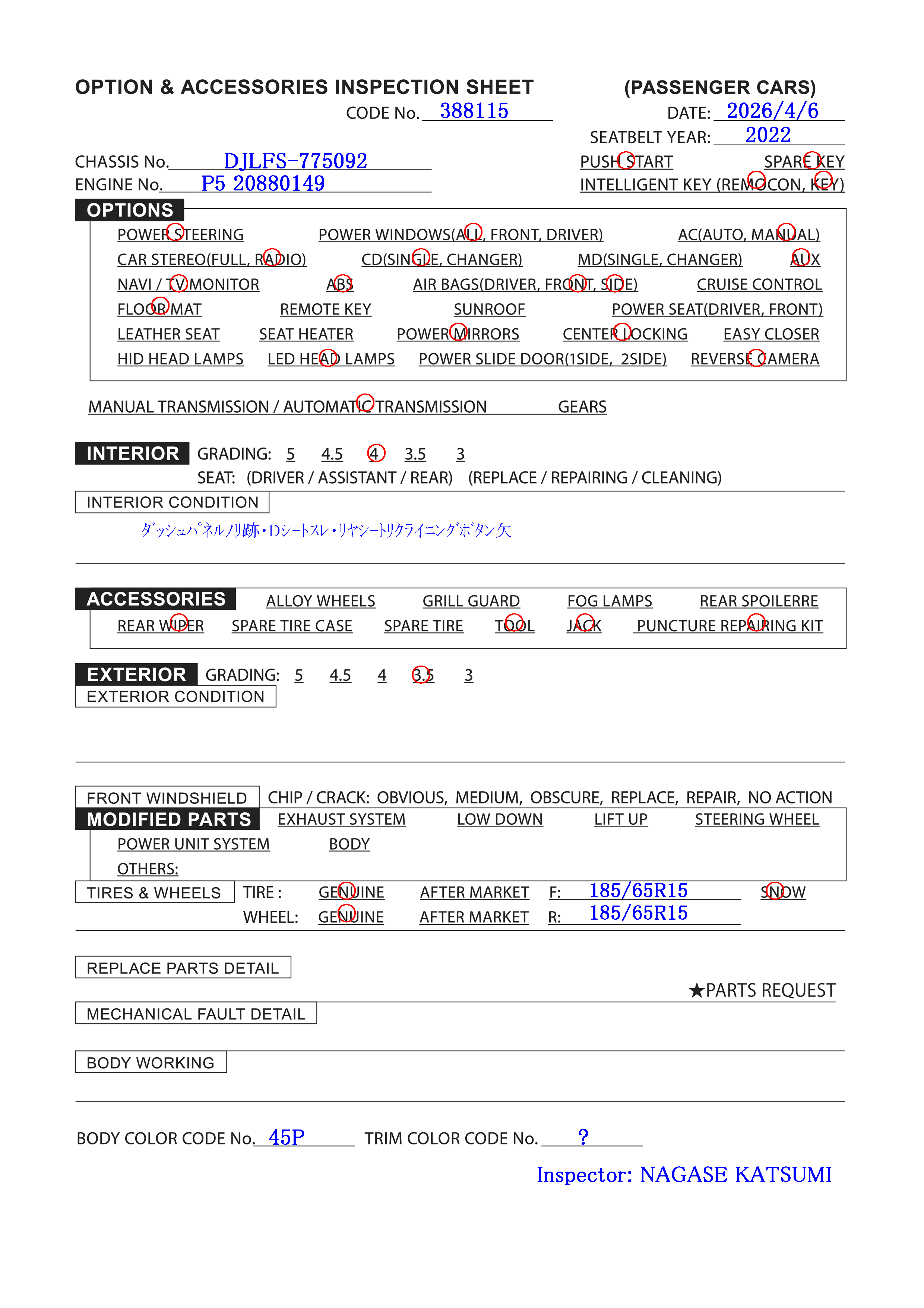 | Code De Couleur Extérieur: | 45P |