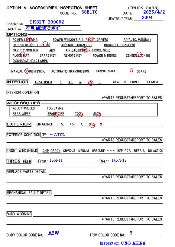 3.5 points * auction grade 3.5 * LOW MILEAGE 48000KM |