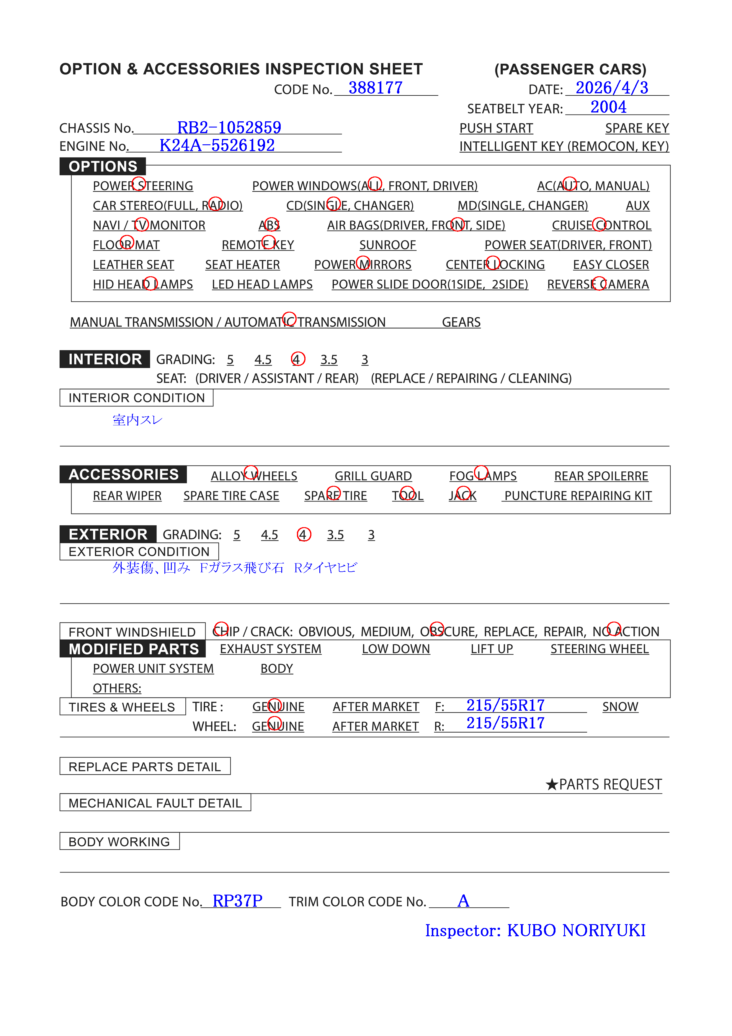 | Le NUMÉRO de moteur: | K24A-5526192 |