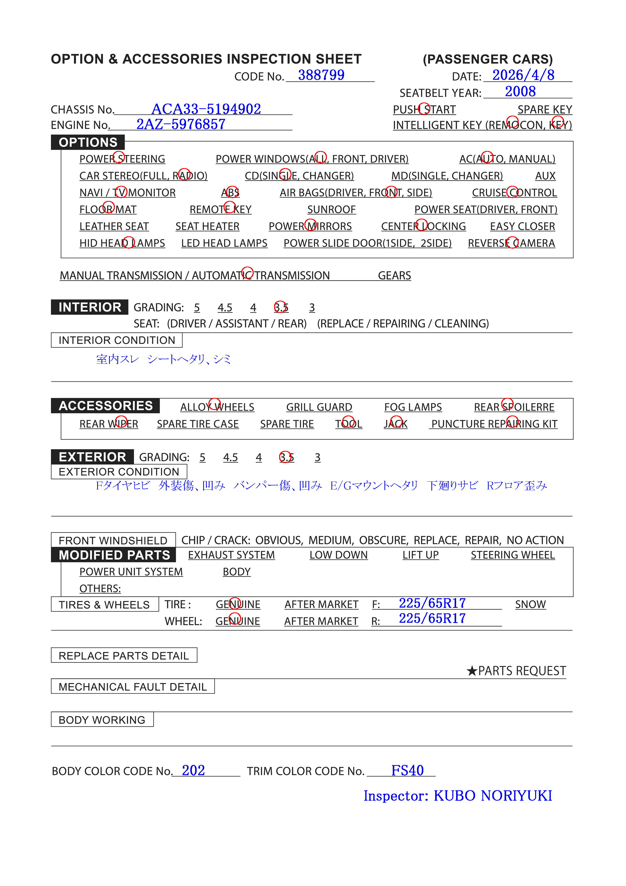 | Chassis: | ACA33-5194*** |