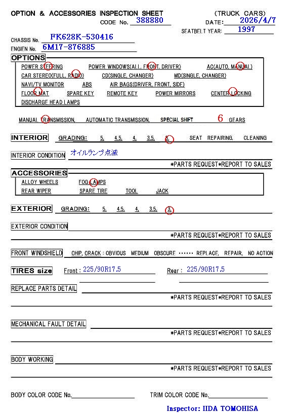 | KC-FK628K | 4/1997 | MT | 185,000 km |