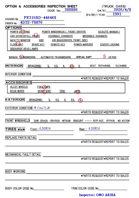 | U-FE315BD | 3/1991 | MT | 72,000 km |