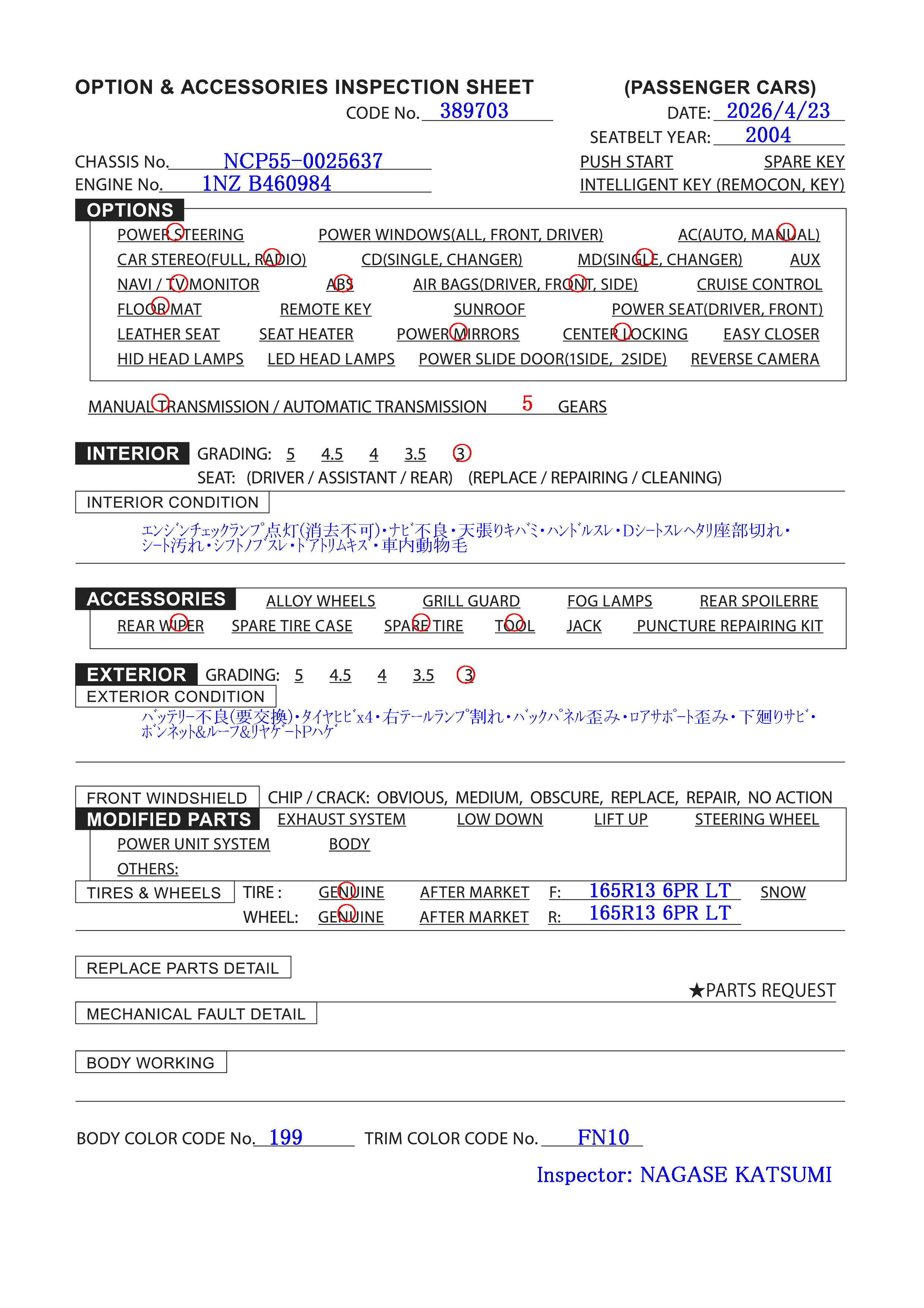 | Engine No: | 1NZ B460984 |