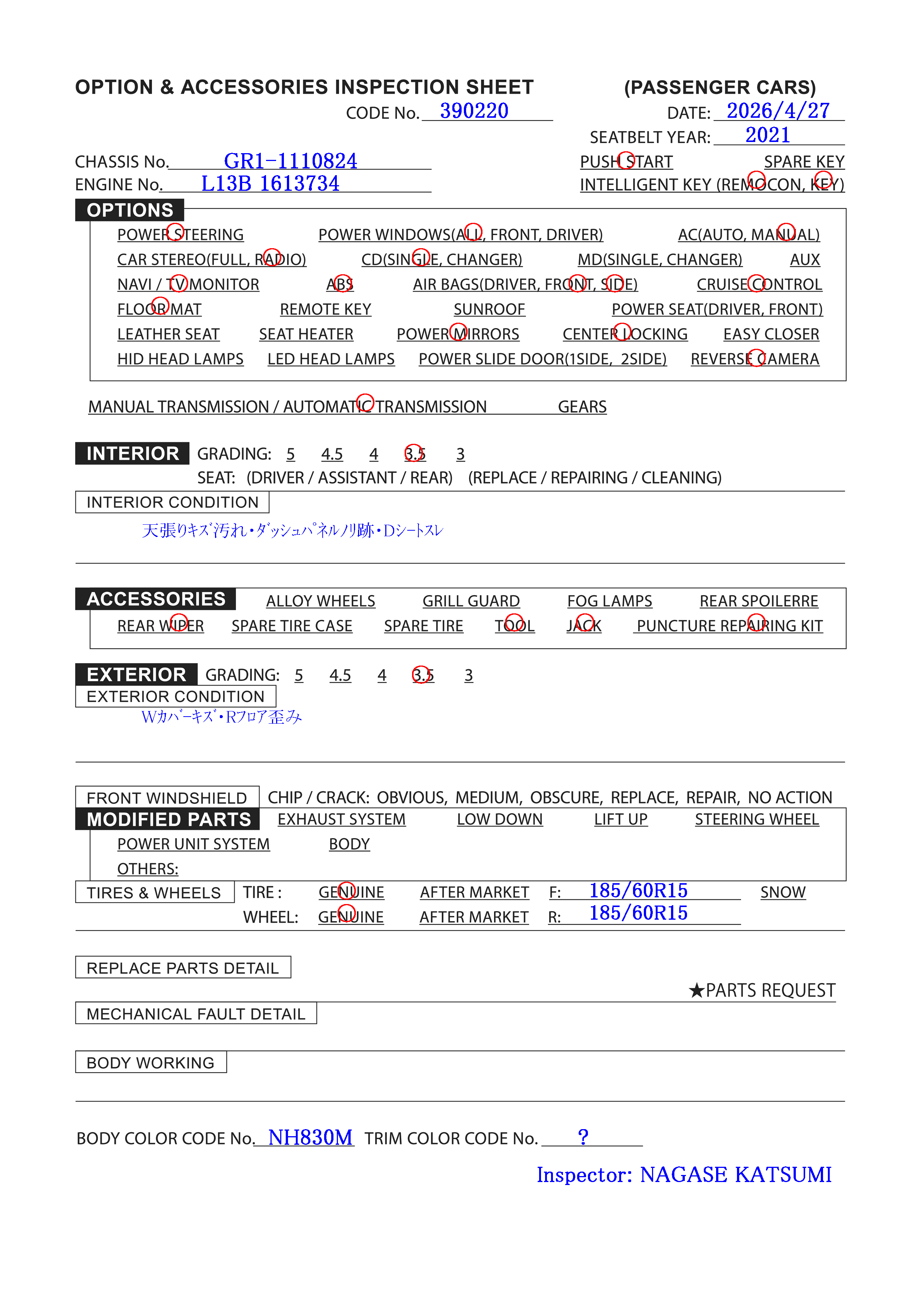 Tire&Wheel Size: F:185/60R15 R:185/60R15